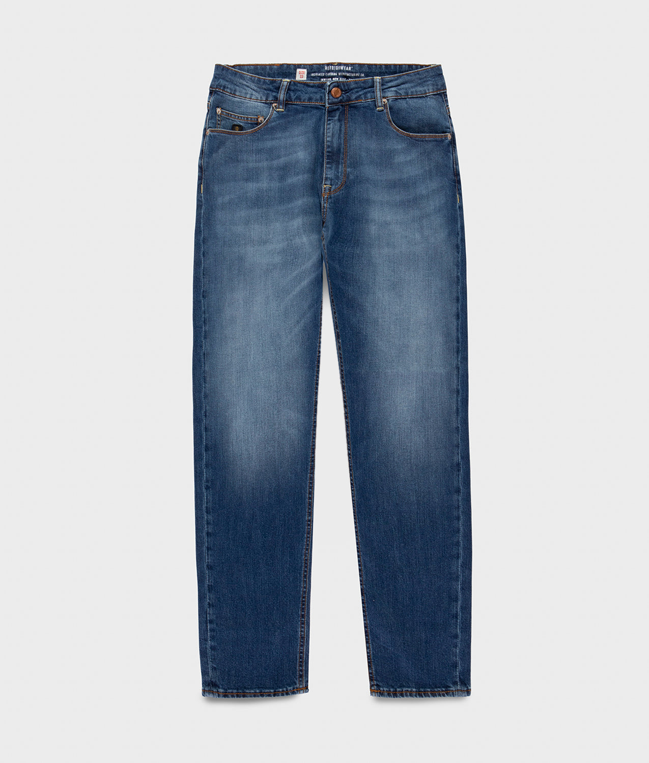The Bruce Denim are men’s 5-pocket tapered-fit trousers made of 100% cotton denim, a fabric that is lightweight and breathable, yet substantial and structured at the same time. Perfect for those looking for a versatile and characterful garment, suitable for multiple occasions. The tapered fit is comfortable and pleasant to wear, while ensuring a snug lower leg for a linear and clean look. The medium blue denim features a very light wash that gives it a clean and even-looking tone. The carefully finished details, such as the waistband with button fastening and the RefrigiWear Denim Dept. branded leather patch, add a distinctive and refined touch. A must-have for everyday life, ideal for a casual yet intriguing look, combining style, comfort and quality in a single solution.