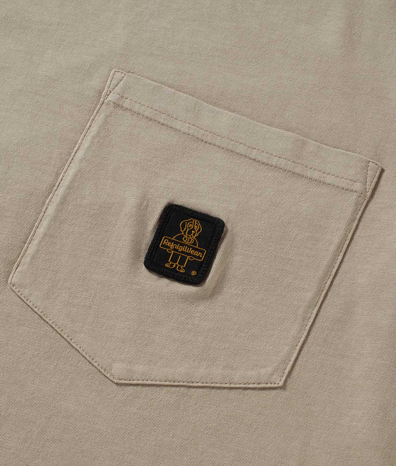 Basic T-shirt in 100% garment-dyed cotton (155 GSM), soft, lightweight, and breathable. The Essential Fit ensures comfort and freedom of movement. A front pocket with logo patch completes the design with a distinctive detail.