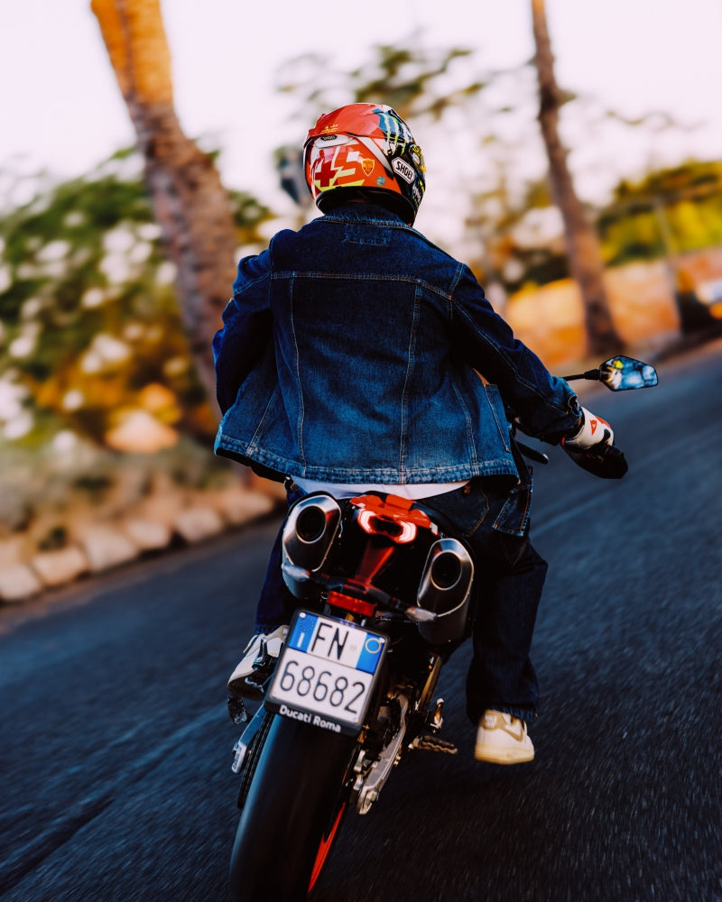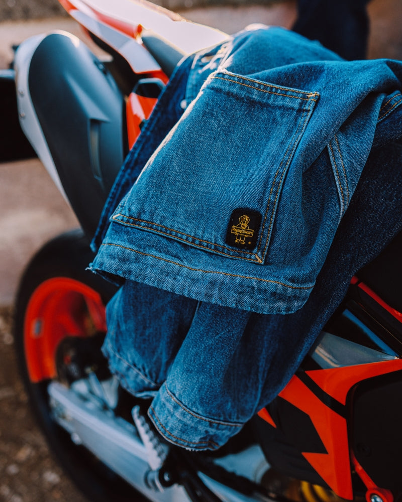 El Drop 03 presenta un total look compuesto por chaqueta en denim dégradé y jeans a juego - símbolos de autenticidad y estilo contemporáneo. En su corazón, el inconfundible emblema del Lobo: signo de fuerza, resiliencia y un vínculo profundo con las propias raíces.