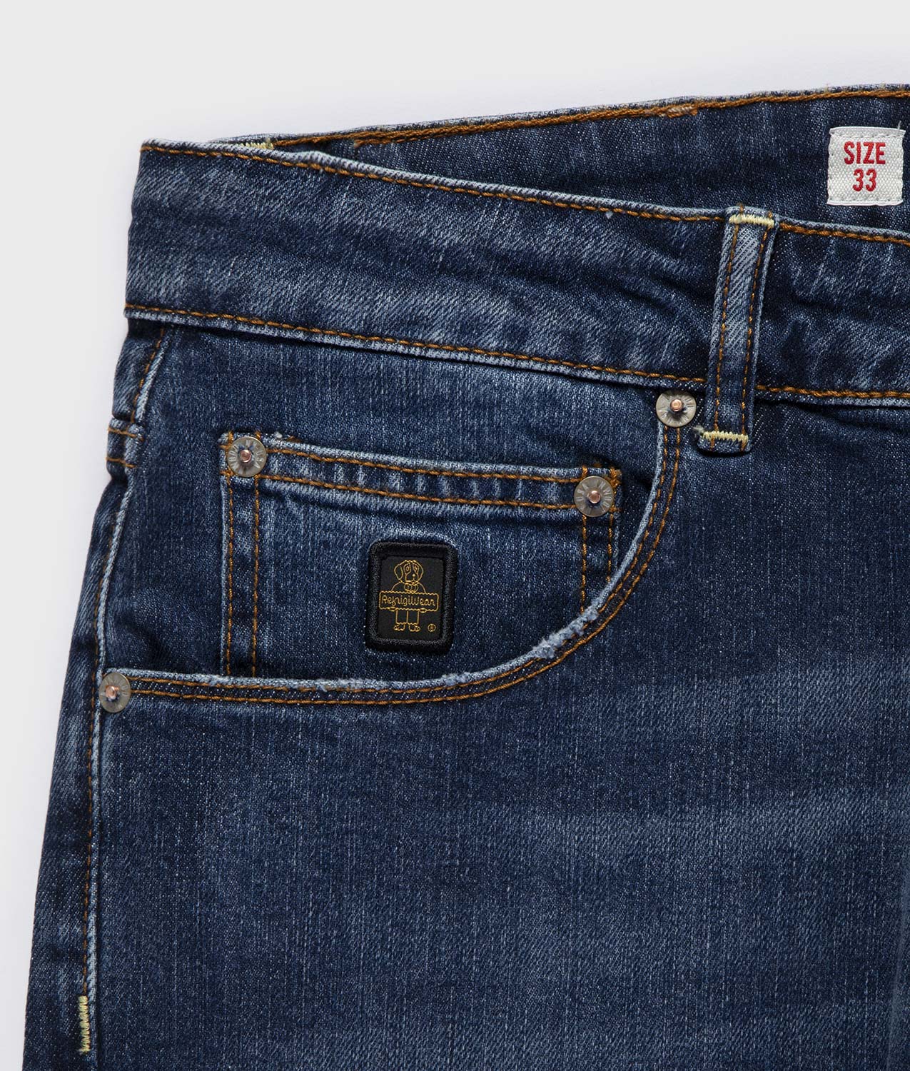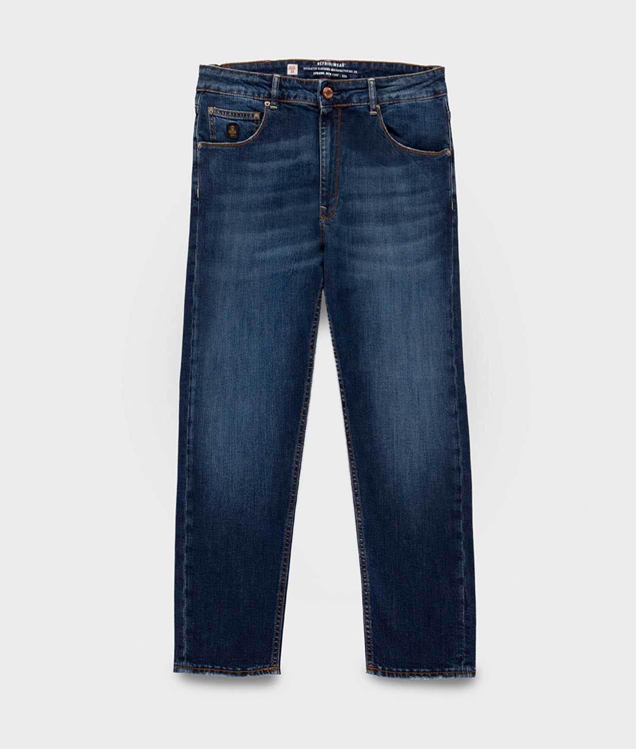 El Bruce Denim es un pantalón de 5 bolsillos para hombre con corte cónico confeccionado en denim de 100 % algodón, un tejido ligero y transpirable, pero al mismo tiempo con cuerpo y estructura. Perfecto para quien busca una prenda versátil y con carácter que se adapte a múltiples ocasiones. El corte cónico garantiza comodidad y es agradable de llevar, a la vez que garantiza adherencia en la parte inferior de la pierna para llevar un estilo lineal y sencillo. El denim, de color azul medio, se caracteriza por un lavado muy ligero que aporta un tono uniforme y sencillo. Los detalles bien acabados, como el cierre con botón en la cintura y la etiqueta de cuero con la marca RefrigiWear Denim Dept. , añaden un toque distintivo y sofisticado. Un imprescindible para el día a día, ideal para llevar un look informal pero intrigante, que combina estilo, comodidad y calidad en una única solución.