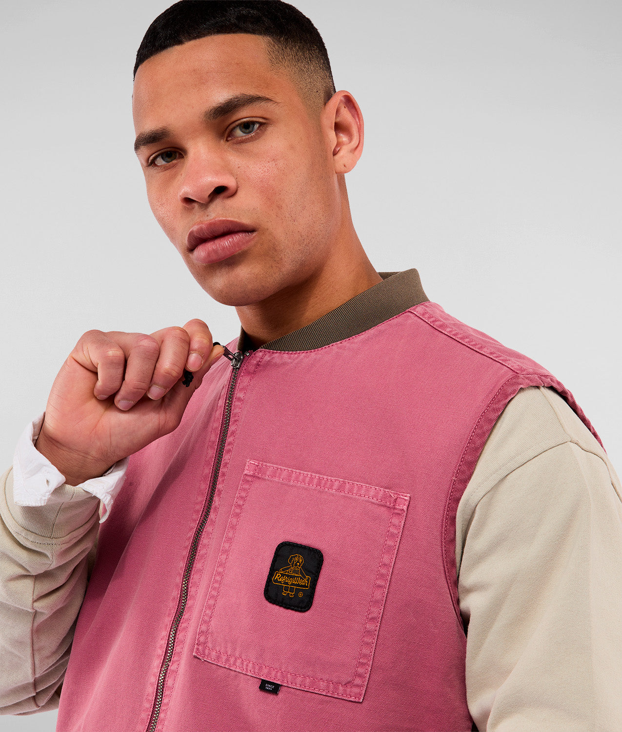 Una nuova versione del nostro iconico smanicato, ispirata a un capo storico d’archivio e reinterpretata in un’inedita edizione in canvas 100% cotone con trama Oxford. Il guscio esterno unisce robustezza e traspirabilità, offrendo un tocco corposo ma estremamente piacevole da indossare. Il design mantiene i tratti distintivi di RefrigiWear®, tra cui la sagoma arrotondata sul fondo, per un fit versatile, i fianchetti e il colletto bomber in costina stretch, per un comfort superiore e una vestibilità perfetta, e il taschino sul petto con rivetti rinforzanti in acciaio, che esaltano il suo look autentico e funzionale. Foderato internamente per garantire il massimo comfort, è dotato di una taschina interna con chiusura in velcro, pensata per offrire una praticità extra. Un capo iconico, perfetto per chi cerca uno stile heritage e contemporaneo allo stesso tempo.