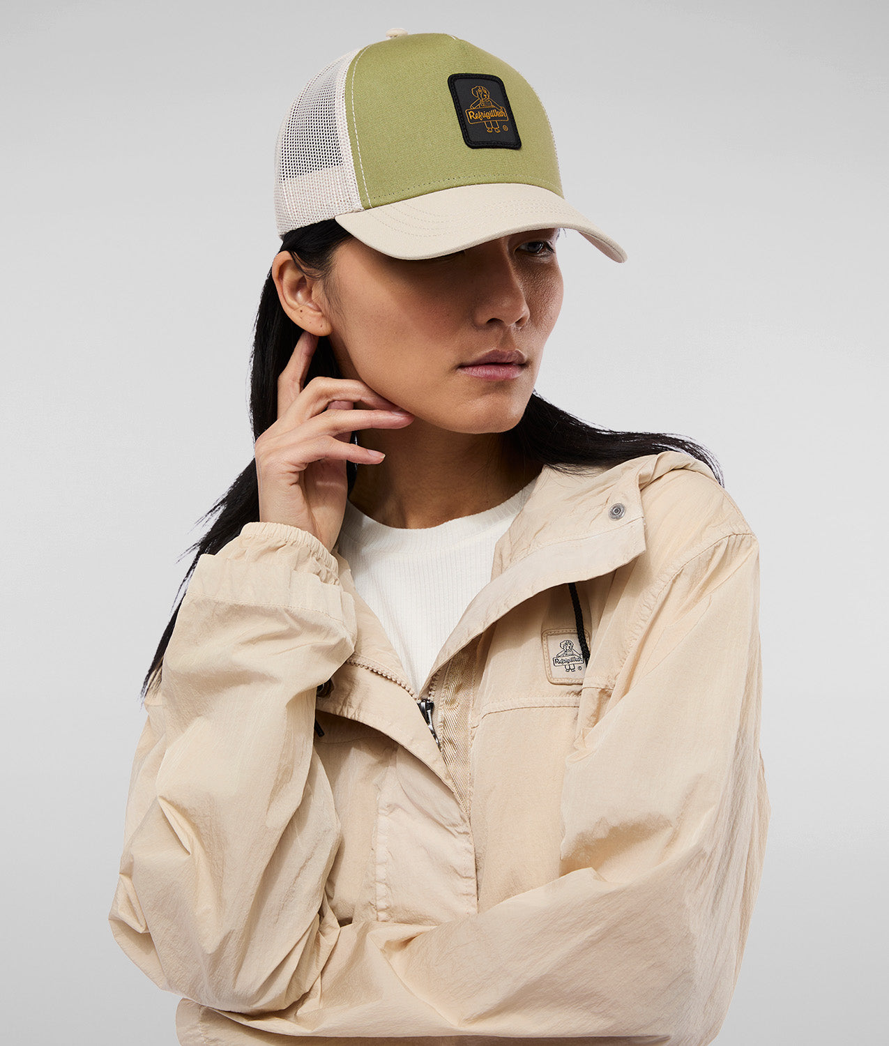 Cappellino trucker con visiera sfoderato internamente e con rete mesh sul retro per garantire il massimo del comfort e della traspirabilità. Patch logo classico ricamato sul fronte.