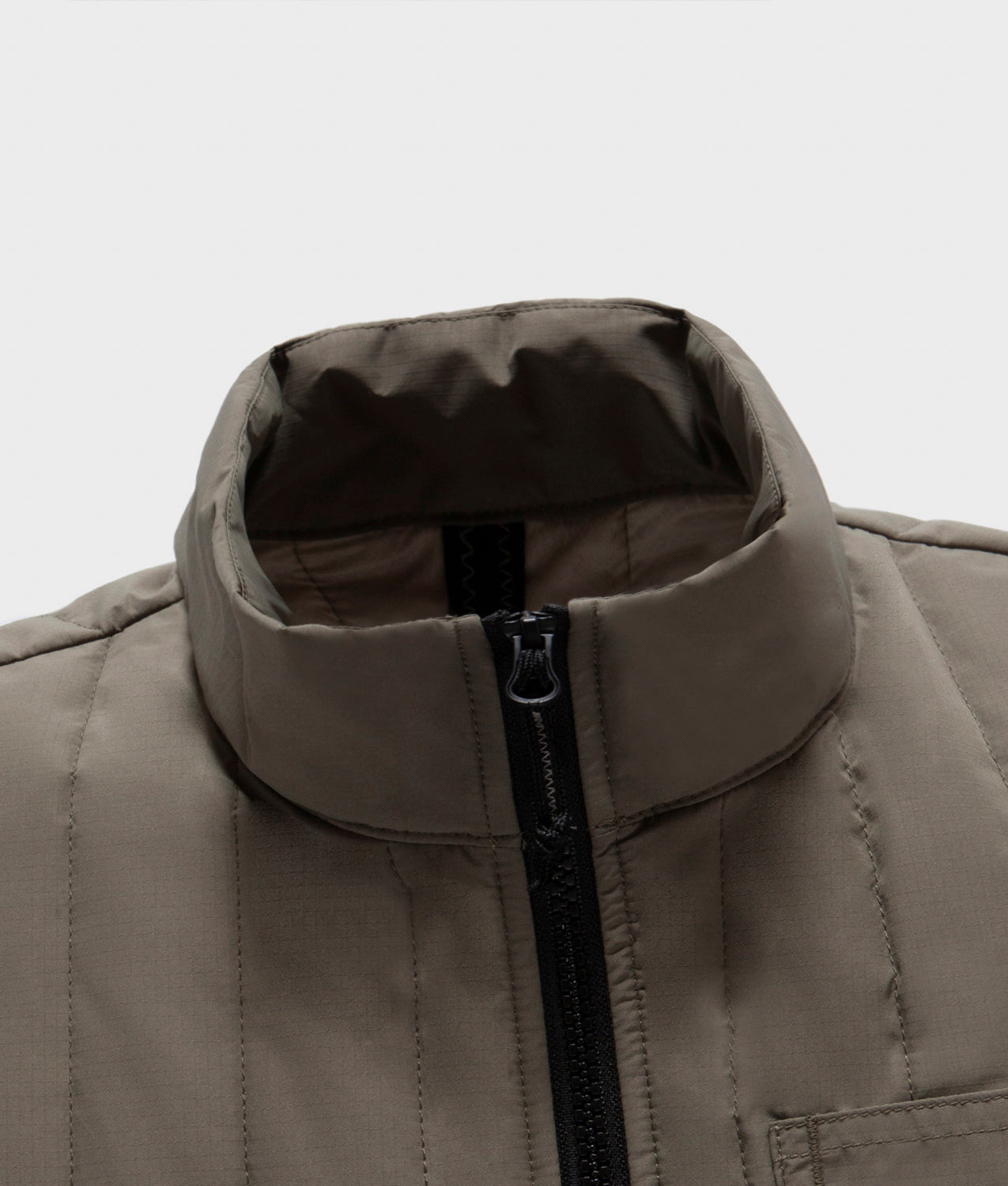 Piumino smanicato realizzato con guscio esterno in Micro-Ripstop, un tessuto resistente, traspirante e dotato di membrana interna anti-goccia, ideale per offrire protezione dalle intemperie senza rinunciare alla leggerezza. L’imbottitura in Sorona® Aura, 100% animal-free, è stata scelta per la sua struttura leggera e a basso spessore, che assicura comfort e una perfetta termo-regolazione in ogni condizione climatica. Perfetto per chi cerca un capo dal gusto tecnico, lineare e dal comfort impeccabile.