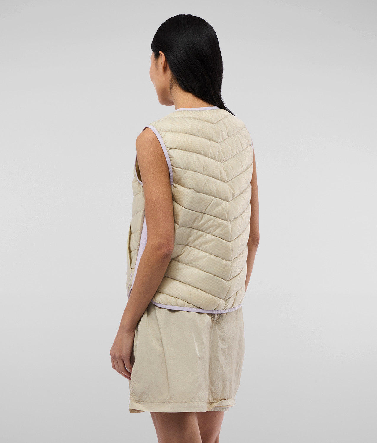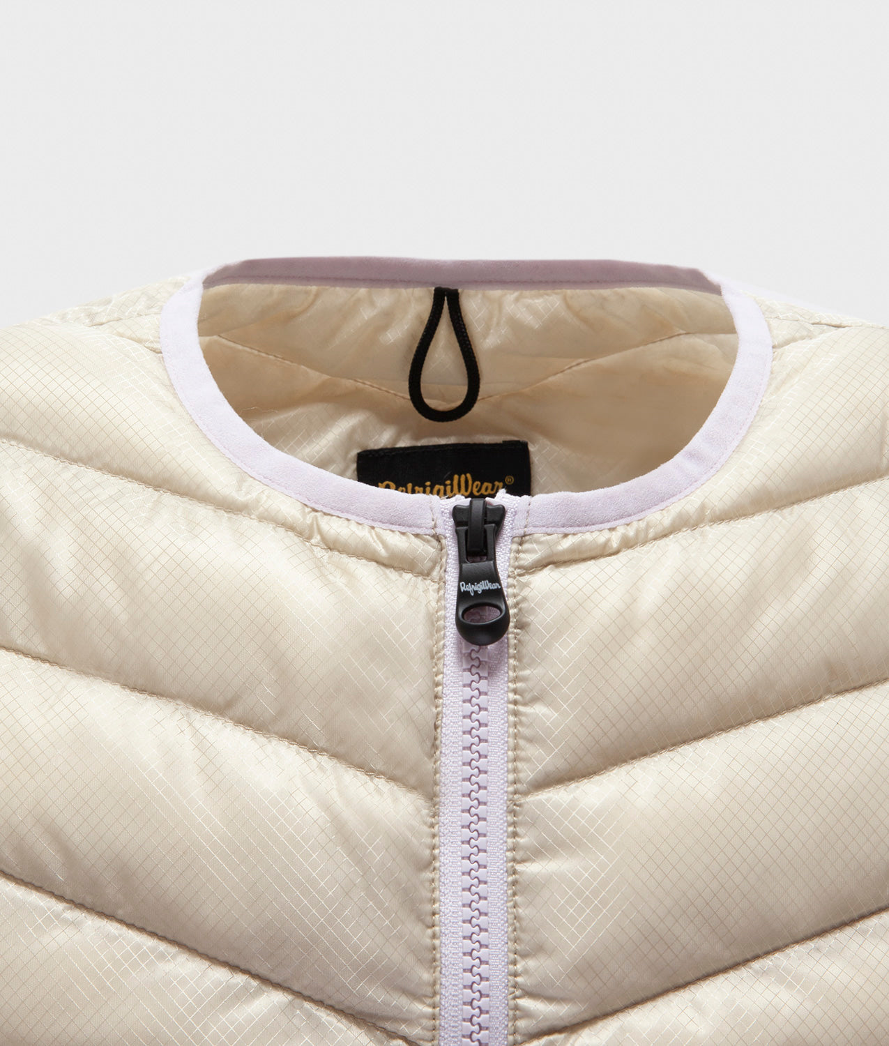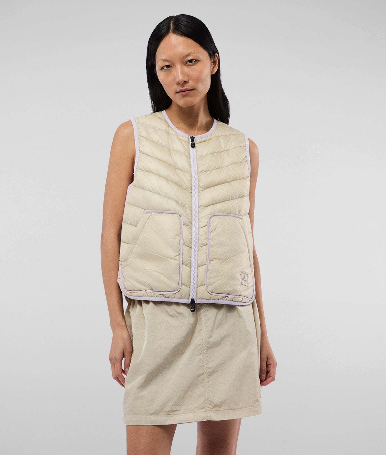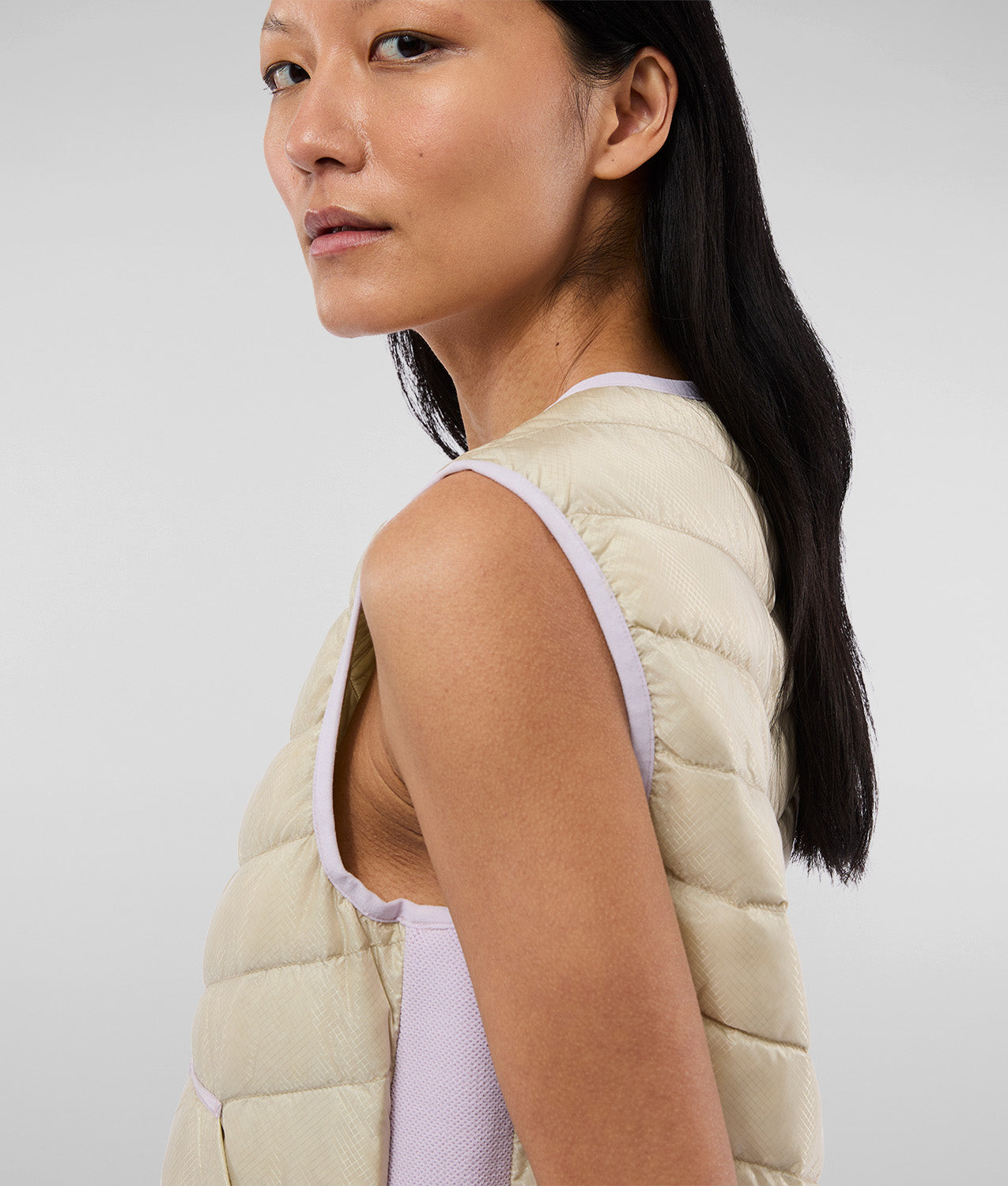 Piumino smanicato da donna dal look giovane e dinamico, perfetto per un utilizzo quotidiano. Ultra-leggero e confortevole, è imbottito al 100% in piuma 90-10 RDS, garantendo morbidezza, termo-regolazione e traspirabilità, oltre a una vestibilità pratica e maneggevole. La vestibilità comoda e i dettagli a contrasto aggiungono un tocco di stile, rendendolo un capo versatile e funzionale, perfetto per affrontare la stagione con comfort e praticità. Il design packable permette di richiuderlo su sé stesso all’interno di una tasca, rendendolo il compagno ideale di viaggio o per ogni occasione.